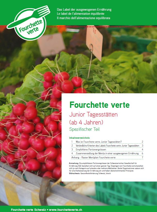 Das Label Fourchette verte «Tagesstätte Junior» fördert eine ausgewogene und nachhaltige Ernährung für Kinder in Heimen oder anderen Institutionen.